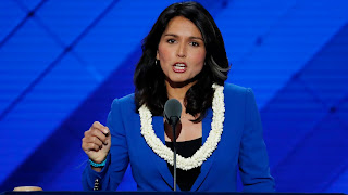 I love Tulsi Gabbard on foreign policy and while her views on domestic issues may be too far left for me to vote for her in the general (maybe she can meet me half-way) the fact that she's light-years more palatable than the rest of the Democratic freak-show made this particular call as easy as pie, thank you...………………………………………………………………………..P.S. And, yes, she's good looking. There, I said it. Happy?.